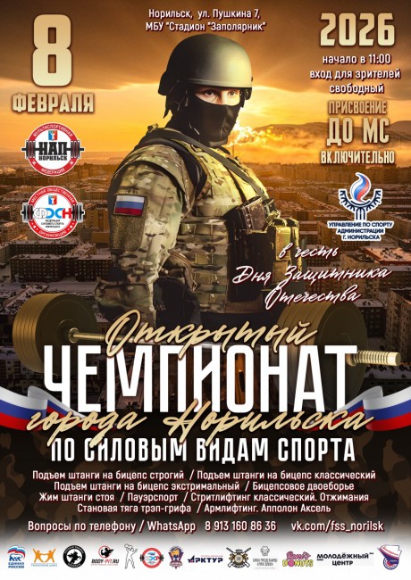 Открытый Чемпионат МО город Норильск по силовым видам спорта, посвященный Дню Защитника Отечества, 8 февраля 2026 года город Норильск, Красноярский край