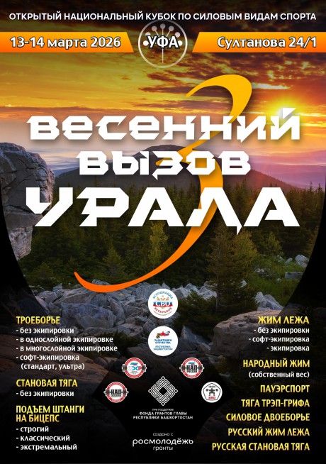 Открытый турнир по силовым видам спорта "ВЕСЕННИЙ ВЫЗОВ УРАЛА - III", 13-14 марта 2026 года, город Уфа, Республика Башкортостан