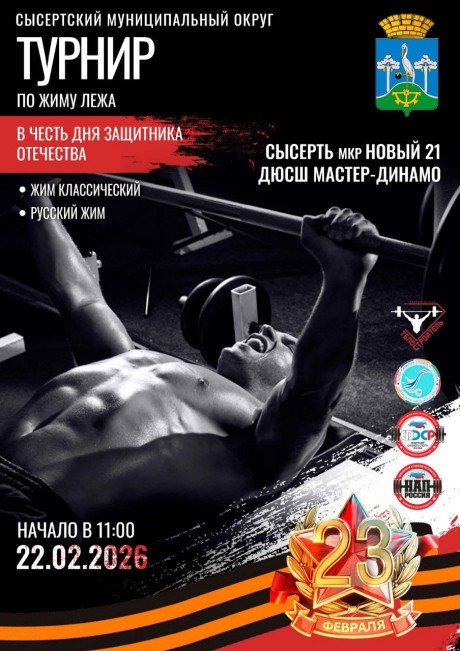 Открытый турнир Сысертского муниципального округа по силовым видам спорта, посвящённый "Дню Защитника Отечества", 22 февраля 2026 года, город Сысерть, Свердловская область