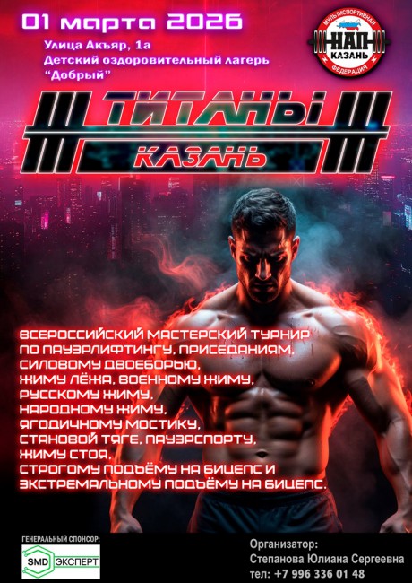 Открытый мастерский турнир по силовым видам спорта "ТИТАНЫ", 28 февраля - 1 марта 2026 года, город Казань, Республика Татарстан