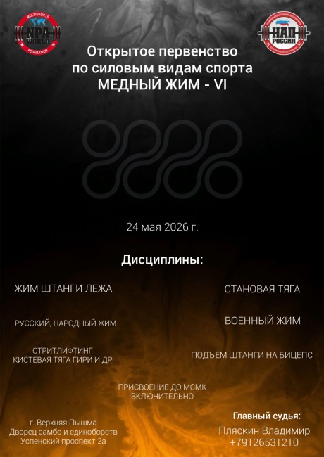 Открытое первенство по силовым видам спорта "МЕДНЫЙ ЖИМ - VI", 24 мая 2026 года, город Верхняя Пышма, Свердловская область