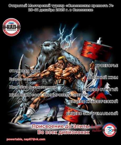 Открытый мастерский жимовой турнир Запада России "СМОЛЕНСКАЯ КРЕПОСТЬ - VII", 20-21 декабря 2025 года, город Смоленск